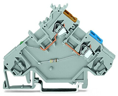 DC 24 V 3-Leiter-Initiatoreneinspeiseklemme; LED grün; für PNP-(plus-)schaltende Initiatoren; Einspeisung auf der Initiatorenseite; mit farbig bedruckten Leitereinführungen; 2,5 mm²; CAGE CLAMP®; 2,50 mm²; grau