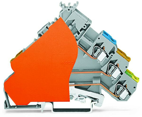 3-Leiter-Aktorenklemme; mit PE-Anschluss; mit farbig bedruckten Leitereinführungen; 2,5 mm²; CAGE CLAMP®; 2,50 mm²; grau
