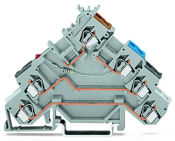 4-Leiter-Initiatorenklemme; LED rot; für NPN-(minus-)schaltende Initiatoren; mit farbig bedruckten Leitereinführungen; 2,5 mm²; CAGE CLAMP®; 2,50 mm²; grau