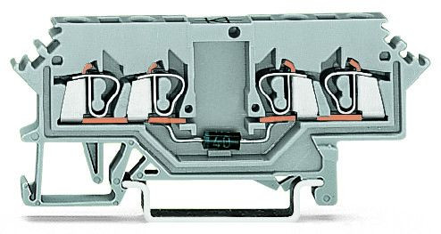 Bauelementklemme; 4 Leiter; mit Diode 1N4007; Anode rechts; für Tragschiene 35 x 15 und 35 x 7,5; 2,5 mm²; CAGE CLAMP®; grau