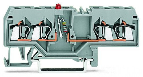 Bauelementklemme; 4 Leiter; LED rot; DC 24 V; für Tragschiene 35 x 15 und 35 x 7,5; 2,5 mm²; CAGE CLAMP®; grau