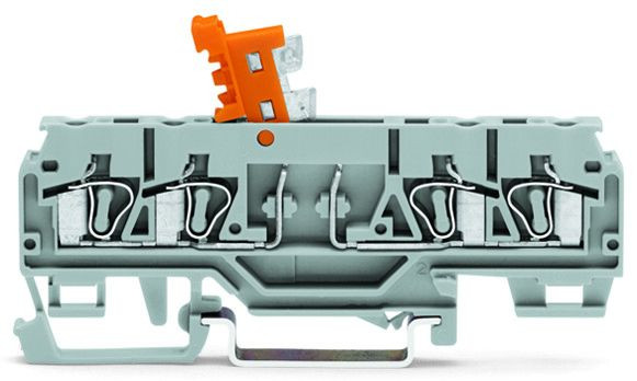 4-Leiter-Trenn- und Messklemme; mit schwenkbarem Trennmesser; mit Prüföffnung; Trennmesserhalter orange; für Tragschiene 35 x 15 und 35 x 7,5; 2,5 mm²; CAGE CLAMP®; 2,50 mm²; grau