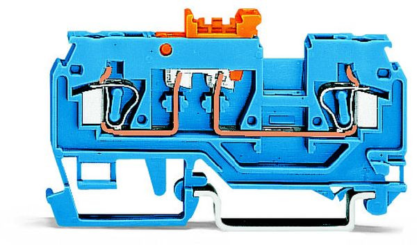 2-Leiter-Trenn- und Messklemme; mit schwenkbarem Trennmesser; mit Prüföffnung; Trennmesserhalter orange; für Anwendungen Ex i geeignet; für Tragschiene 35 x 15 und 35 x 7,5; 2,5 mm²; CAGE CLAMP®; 2,50 mm²; blau