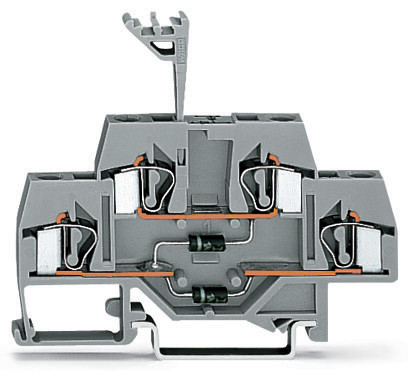 Bauelementklemme; Doppelstock; mit 2 Dioden 1N4007; Anode oben, Anode rechts; für Tragschiene 35 x 15 und 35 x 7,5; 4 mm²; CAGE CLAMP®; grau