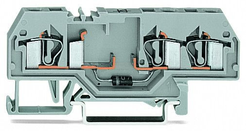 Bauelementklemme; 3 Leiter; mit Diode 1N4007; Anode links; für Tragschiene 35 x 15 und 35 x 7,5; 4 mm²; CAGE CLAMP®; grau