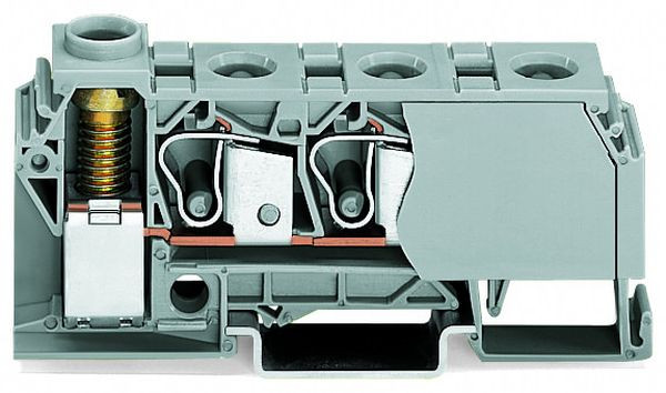Verteilerklemme; 10 mm²; seitliche Beschriftungsaufnahmen; für Tragschiene 35 x 15 und 35 x 7,5; Schraubanschluss und CAGE CLAMP®; 3 x CAGE CLAMP®-Anschluss 10 mm²; 1 x Schraubanschluss 35 mm²; 10,00 mm²; grau