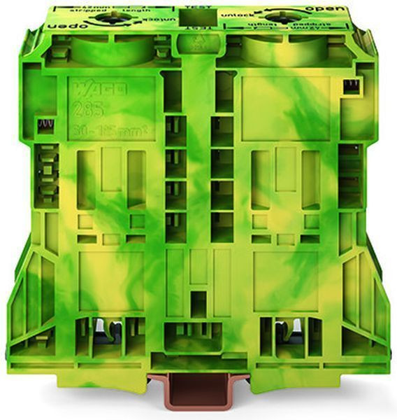 2-Leiter-Schutzleiterklemme; 120 mm²; seitliche Beschriftungsaufnahmen; nur auf Tragschiene 35 x 15; 2,3 mm dick; Kupfer; POWER CAGE CLAMP; 120,00 mm²; grün-gelb