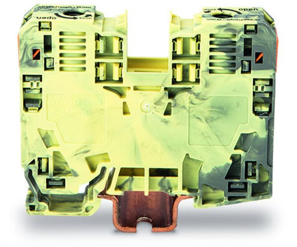 2-Leiter-Durchgangsklemme; 35 mm²; seitliche Beschriftungsaufnahmen; nur auf Tragschiene 35 x 15; POWER CAGE CLAMP; 35,00 mm²; dunkelgrau-gelb