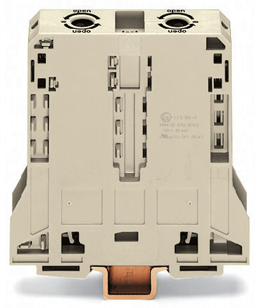 2-Leiter-Durchgangsklemme; 95 mm²; für Anwendungen Ex e II geeignet; seitliche Beschriftungsaufnahmen; nur auf Tragschiene 35 x 15; POWER CAGE CLAMP; 95,00 mm²; lichtgrau