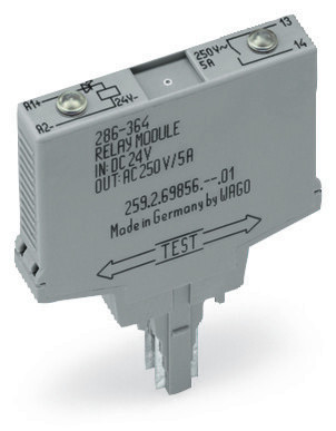 Relaismodul; Eingangsnennspannung DC 24 V; 1 Schließer; Grenzdauerstrom 5 A; Statusanzeige rot; 10 mm Baubreite; grau