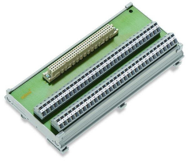 Übergabemodul; Steckverbinder gemäß DIN 41612; 64-polig; Gegenstecker für Lötanschluss; Steckrichtung vertikal; Leiterplattenklemmen, 2-reihig; im Montagesockel; Bauform C; 2,50 mm²