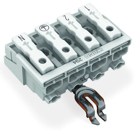 | Kurzbeschreibung | Leuchtenanschlussklemme,Drücker extern,mit abgewinkeltem PE-Rastkontakt,weiß |