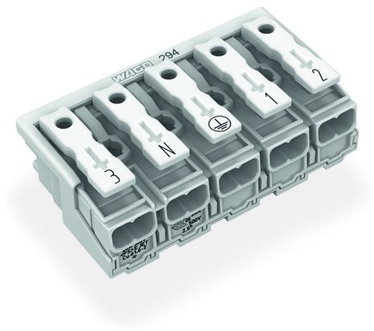 Die Netzanschlussklemme mit der Artikelnummer 294-5055 schafft eine reibungslose Elektroinstallation. Diese Netzanschlussklemme benötigt für den Leiteranschluss eine Abisolierung mit Längen zwischen 8 und 9 mm . Dieses Produkt mit den 4 Leiteranschlüssen verwendet die Push-in CAGE CLAMP®- sowie die PUSH WIRE®-Technologie. Mit der Push-in CAGE CLAMP® Anschlusstechnik wird der Anschluss aller Leiterarten perfekt. Durch den Zusatznutzen des direkten Steckens können Leiter mit ausreichender Knicksteifigkeit sowie feindrähtige Leiter mit Aderendhülse ohne Werkzeug gesteckt werden. Der Steckklemmanschluss PUSH WIRE® nutzt die Knicksteifigkeit der Leiter, um dadurch die Federkraft zu überwinden und so den Leiter schneller zu klemmen. In Breite x Höhe x Tiefe sind die Abmessungen (50 x 21,53 x 27,3) mm. Diese Netzanschlussklemme ist in Abhängigkeit von der Leiterart für Leiterquerschnitte von 0,5 mm² bis 2,5 mm² zum einen und für Leiterquerschnitte von 0,5 mm² bis 2,5 mm² zum anderen sowie für Leiterquerschnitte von 0,5 mm² bis 1,5 mm² und von 0,5 mm² bis 0,75 mm² geeignet. Für die Oberfläche der Kontakte wurde Zinn verwendet.Merkmale