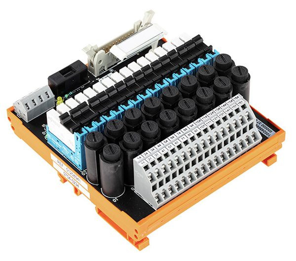 Übergabemodul für Systemverkabelung; Steckverbinder gemäß DIN 41651; Stiftleiste; 20-polig; 16-Kanal-Relaisausgang; 1 Schließer; Doppelstock-Leiterplattenklemmen; mit Ausgangssicherung; im Montagesockel