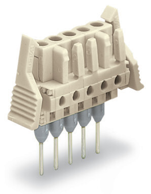Federleiste für Reihenklemmen; Stifte 0,6 x 1 mm; gerade; 100% fehlsteckgeschützt; Verriegelungsklinke; Rastermaß 5 mm; 10-polig; lichtgrau