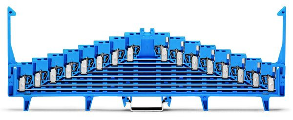 8-Etagen-Rangierklemme; mit Rasthaken; ein Potential je Ebene; mit Prüföffnung Ø 2,3 mm; Aufdruck: a-b-c-d-e-f-g-h--h-g-f-e-d-c-b-a; für Tragschiene 35 x 15; 1,5 mm²; blau