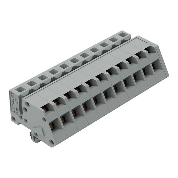 1-Leiter Federleiste, abgewinkelt; CAGE CLAMP®; 2,5 mm²; Rastermaß 5 mm; 11-polig; Rastfüße; 2,50 mm²; grau