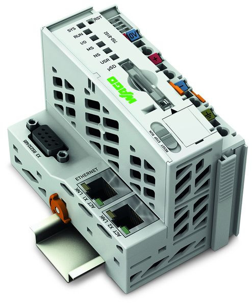 Der Controller PFC100 ist eine kompakte Steuerung an dem modularen WAGO I/O System. Neben den Netzwerk- und Feldbus-Schnittstellen unterstützt er digitale und analoge Module sowie Sondermodule der Serien 750/753.