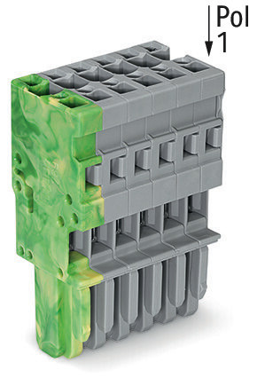 1-Leiter-Federleiste; CAGE CLAMP®; 4 mm²; Rastermaß 5 mm; 6-polig; Kodiernase; 4,00 mm²; grau/grün-gelb