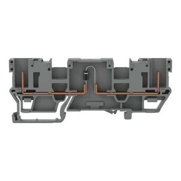 2-Pin-Bauelement-Basisklemme; mit 2-fach-Querbrückung; mit Diode 1N4007; Anode links; für Tragschiene 35 x 15 und 35 x 7,5; 4 mm²; grau
