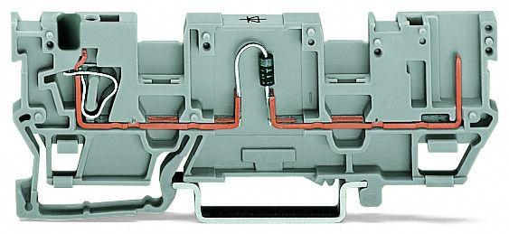 1-Leiter/1-Pin-Bauelement-Basisklemme; mit 2-fach-Querbrückung; mit Diode 1N4007; Anode rechts; für Tragschiene 35 x 15 und 35 x 7,5; 4 mm²; CAGE CLAMP®; grau