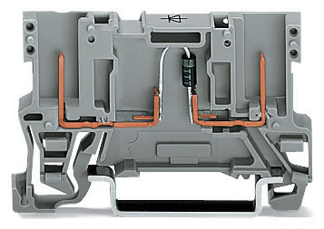 2-Pin-Bauelement-Basisklemme; mit Diode 1N4007; Anode rechts; für Tragschiene 35 x 15 und 35 x 7,5; 4 mm²; grau