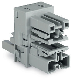 h-Verteiler; 2-polig; Kod. B; 1 Eingang; 2 Ausgänge; beidseitige Abgänge; 2 Verriegelungsklinken; grau