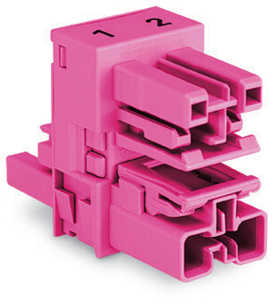 h-Verteiler; 2-polig; Kod. B; 1 Eingang; 2 Ausgänge; beidseitige Abgänge; 2 Verriegelungsklinken; pink