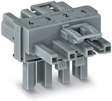 T-Verteiler; 4-polig; Kod. B; 1 Eingang; 2 Ausgänge; 2 Verriegelungsklinken; grau