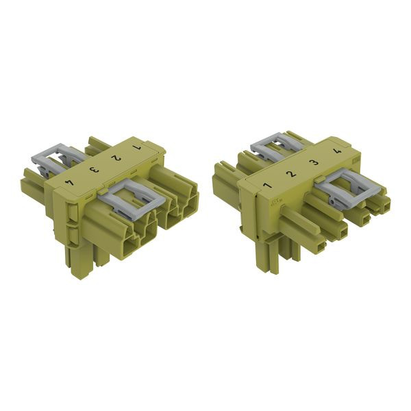 T-Verteiler; 4-polig; Kod. B; 1 Eingang; 2 Ausgänge; 2 Verriegelungsklinken; hellgrün