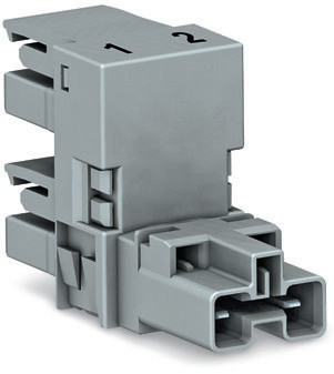 h-Verteiler; 2-polig; Kod. B; 1 Eingang; 2 Ausgänge; einseitige Abgänge; 2 Verriegelungsklinken; grau