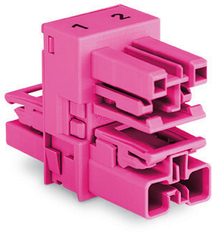 h-Verteiler; 2-polig; Kod. B; 1 Eingang; 2 Ausgänge; beidseitige Abgänge; 3 Verriegelungsklinken; für fliegende Verbindungen; pink