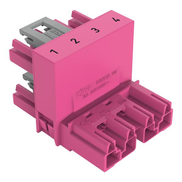 h-Verteiler; 4-polig; Kod. B; 1 Eingang; 2 Ausgänge; einseitige Abgänge; 2 Verriegelungsklinken; pink