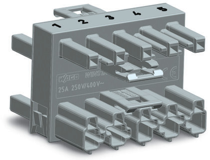 Der Verteiler der Produktfamilie WINSTA® MIDI Bemessungsstrom 25 A gewährt Ihnen die maximale Flexibilität bei der Elektroinstallation. Für mehr Sicherheit in der Elektroinstallation ist der Installationssteckverbinder mit einem mechanischen Fehlsteckschutz ausgestattet. Laut der Schutzart IP20 gewährleistet der Installationssteckverbinder Schutz vor der Berührung spannungsführender Bauteile (In gestecktem Zustand: IP2xC (Diese Installationssteckverbinder sind nicht für den Einsatz in leicht zugänglichen Bereichen vorgesehen!)). Installationssteckverbinder der Kodierung B der Familie WINSTA® MIDI sind in Pink, Hellgrün oder Grau verfügbar und ermöglichen somit eine Differenzierung von Stromkreisen wie z. B. für Beleuchtung, Pumpen oder Jalousien. Zudem sind eigene Polkennzeichnungen möglich. Bemessungsstrom und -spannung sind wichtige Kriterien bei der Auswahl eines Installationssteckverbinders: Sie geben Auskunft über die möglichen Einsatzbereiche und Anwendungen. Bei diesem Produkt beträgt der Bemessungsstrom 25 A – damit ist es auch für leistungsstarke Verbraucher geeignet. WINSTA® MIDI mit der Push-in CAGE CLAMP®-Federanschlusstechnik ist ein Synonym für eine große Bandbreite an individuellen Produkten, mit denen Sie die Installation individuell, leicht, zügig und sicher ausführen können.Push-in CAGE CLAMP®-Federanschlusstechnik – Installationen fehlerfrei stecken, statt umständlich zu verschrauben!