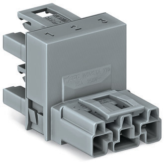 h-Verteiler; 3-polig; Kod. B; 1 Eingang; 2 Ausgänge; einseitige Abgänge; 3 Verriegelungsklinken; für fliegende Verbindungen; grau