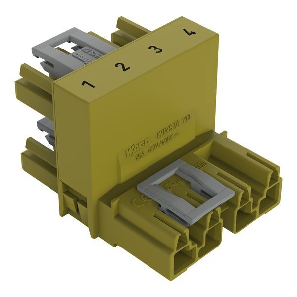 h-Verteiler; 4-polig; Kod. B; 1 Eingang; 2 Ausgänge; einseitige Abgänge; 3 Verriegelungsklinken; für fliegende Verbindungen; hellgrün