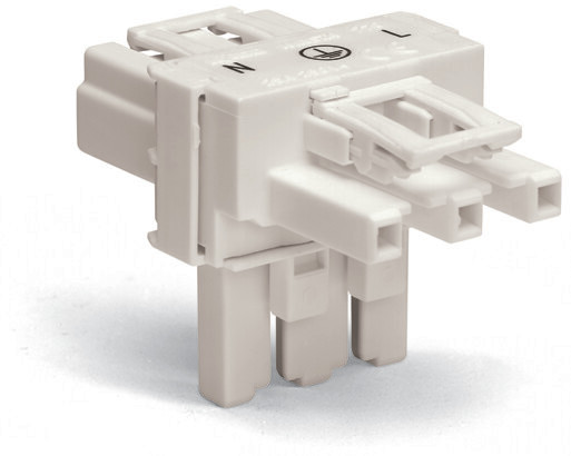 T-Verteiler; 3-polig; Kod. A; 1 Eingang; 2 Ausgänge; 2 Verriegelungsklinken; weiß