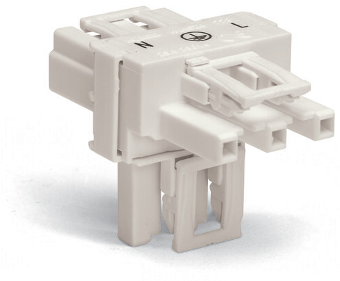 T-Verteiler; 3-polig; Kod. A; 1 Eingang; 2 Ausgänge; 3 Verriegelungsklinken; für fliegende Verbindungen; weiß