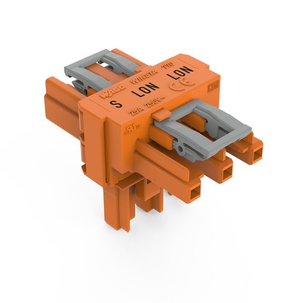 T-Verteiler; 3-polig; Kod. R; 1 Eingang; 2 Ausgänge; 2 Verriegelungsklinken; orange