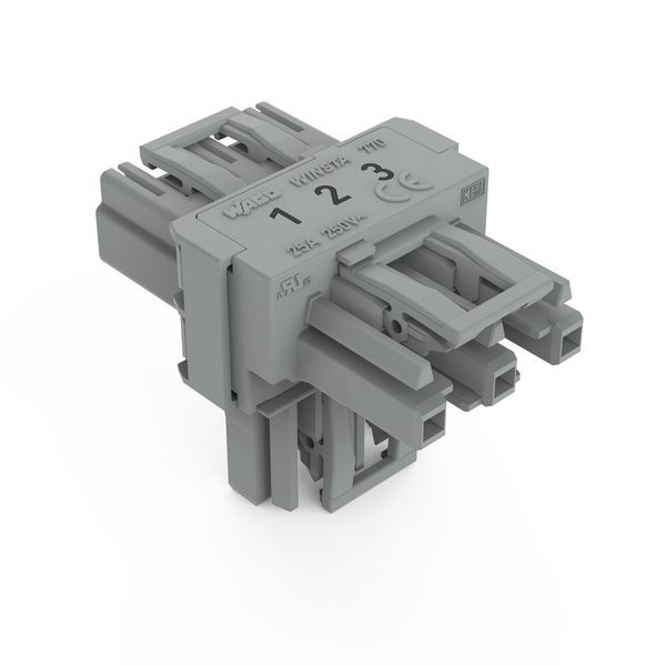 T-Verteiler; 3-polig; Kod. B; 1 Eingang; 2 Ausgänge; 3 Verriegelungsklinken; für fliegende Verbindungen; grau