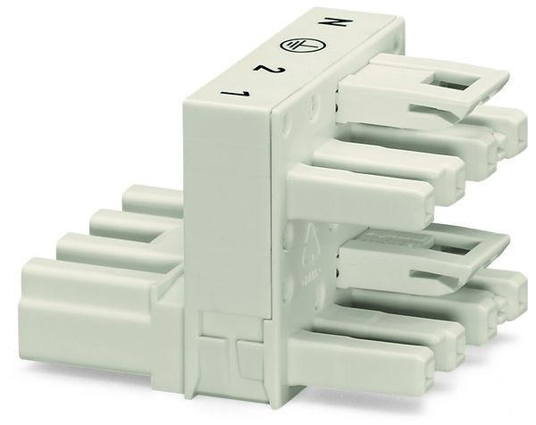 h-Verteiler; 4-polig; Kod. A; 1 Eingang; 2 Ausgänge; einseitige Abgänge; 2 Verriegelungsklinken; weiß