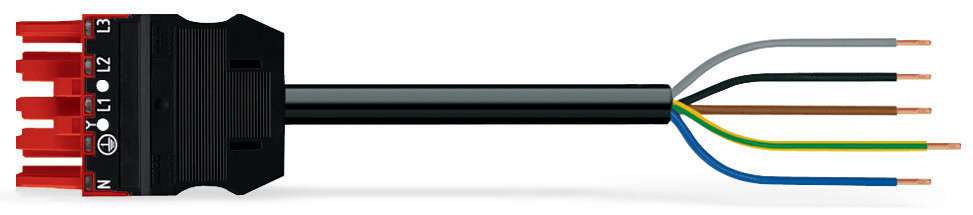 konfektionierte Anschlussleitung; Eca; Buchse/offenes Ende; 5-polig; Kod. P; H05VV-F 5G 2,5 mm²; 3 m; 2,50 mm²; rot