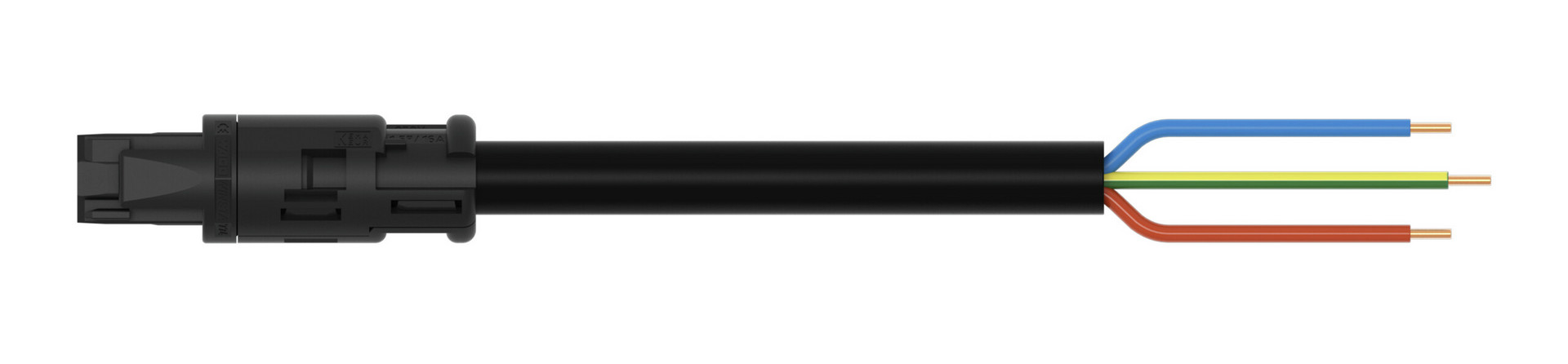 konfektionierte Anschlussleitung; Eca; Buchse/offenes Ende; 3-polig; Kod. A; H05Z1Z1-F 3G 2,5 mm²; 2 m; 2,50 mm²; schwarz