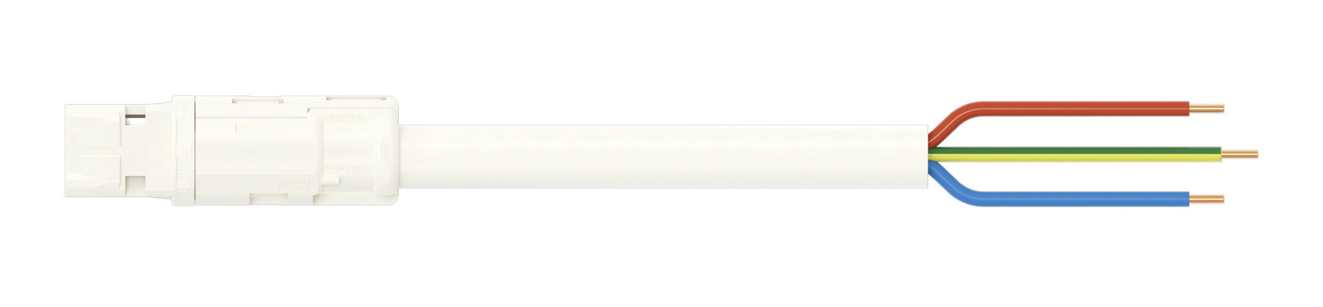 konfektionierte Anschlussleitung; Eca; Stecker/offenes Ende; 3-polig; Kod. A; H05Z1Z1-F 3G 2,5 mm²; 5 m; 2,50 mm²; weiß