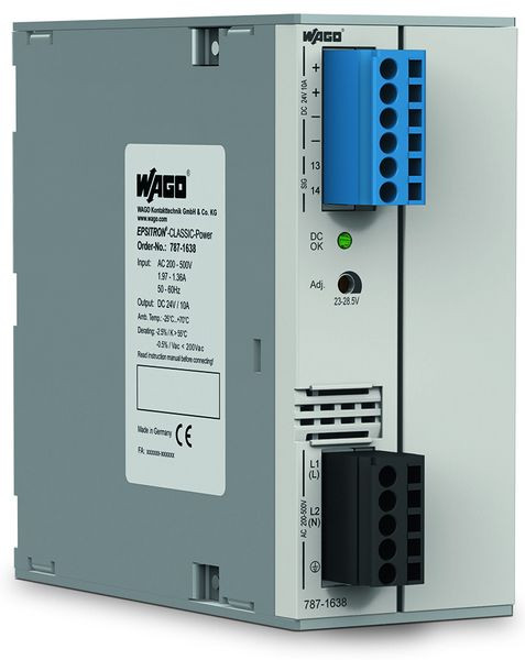 Primär getaktete Stromversorgung; Classic; 2-phasig; Ausgangsspannung DC 24 V; Ausgangsstrom 10 A; TopBoost; DC-OK-Kontakt