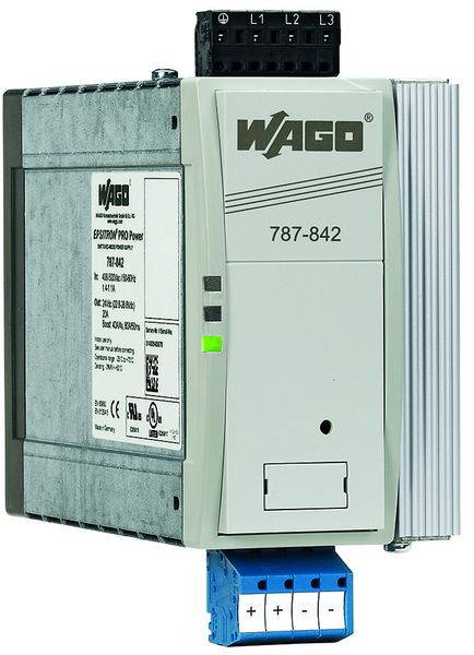 EPSITRON®-PRO-Power, primärgetaktet,mit Weitbereichseingang (AC 340-550V) und stabilisierter, einstellbarer Ausgangsspannung DC 24V, hoher Wirkungsgrad, integrierter PowerBoost (bis zu 100% mehr Ausgangsleistung für 4s) und TopBoost (zusätzlicher Ausgangsstrom von bis zu 60A für 50ms, zur ausgangsseitigen Absicherung mit klassischen Leitungsschutzschaltern)