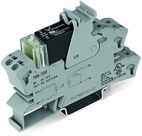 CAGE CLAMP®S-Anschluss 0,34-2,5 mm2 Solid-State-Relaismodul; Eingangsnennspannung DC 24 V; Ausgangsspannungsbereich DC 0 … 24 V; Grenzdauerstrom 3,5 A; 2-Leiter-Anschluss; Statusanzeige rot; 15 mm Baubreite; grau