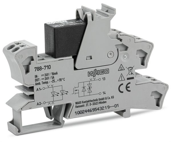 Solid-State-Relaismodul; Eingangsnennspannung DC 24 V; Ausgangsspannungsbereich DC 0 … 35 V; Grenzdauerstrom 5 A; 2-Leiter-Anschluss; Statusanzeige grün; 15 mm Baubreite