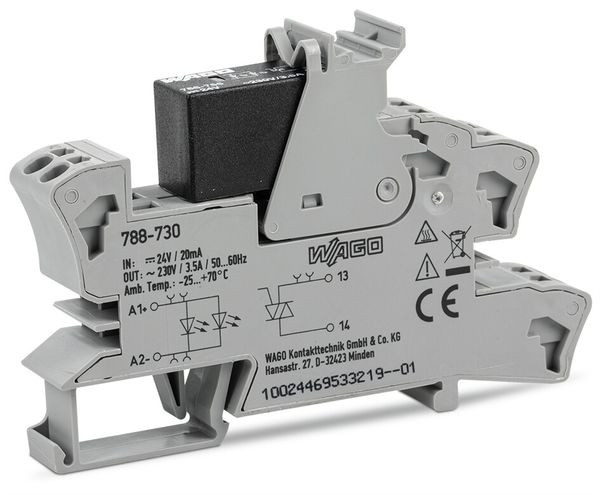 | Kurzbeschreibung | Solid-State-Relaismodul,Eingangsnennspannung DC 24 V,Ausgangsspannungsbereich AC 12 … 275 V,grau |