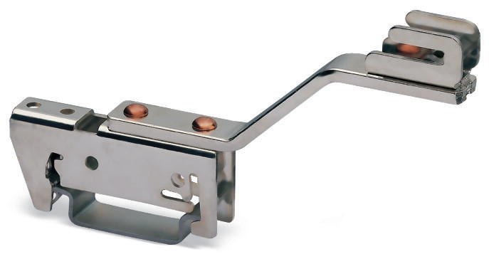 Sammelschienenhalter; für Sammelschienen Cu 10 mm x 3 mm; einseitig, abgewinkelt; auf TS 35 aufrastbar; silberfarben